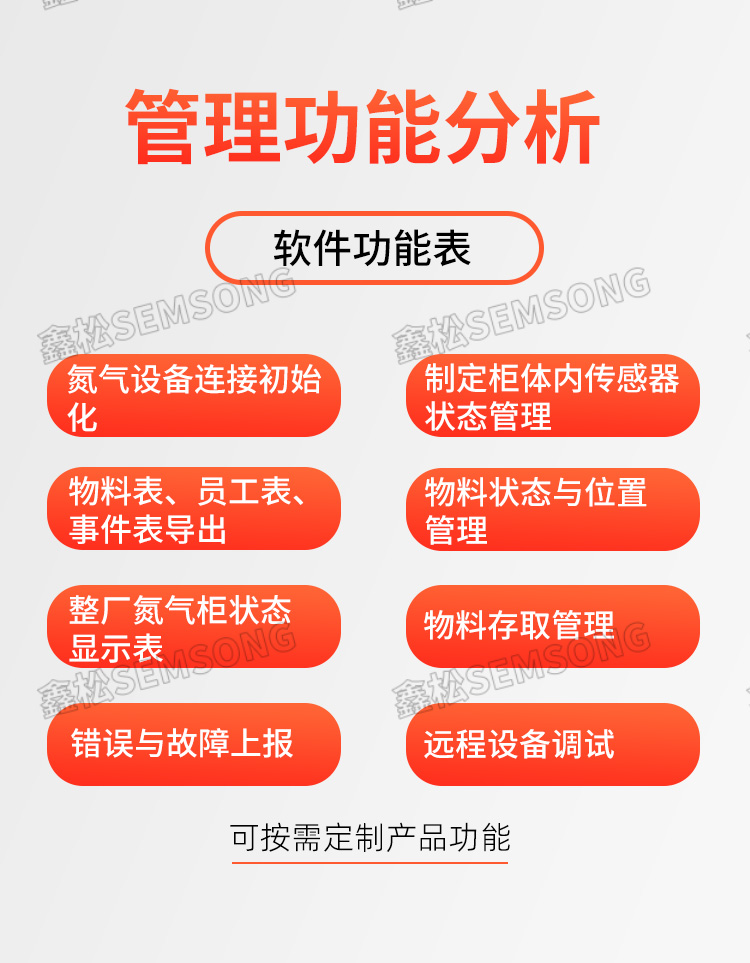 智能氮氣柜是利用氮氣來達到防氧化防潮目的柜體,氮氣柜具有送氮和排氣的通路這種控制方式,可真正做到對內(nèi)部含氧量的控制,有目的起到防氧化功能,同時也有更高的節(jié)氮功能。被廣泛應(yīng)用在微電子,半導體,新能源,國防,軍工行業(yè)的研發(fā)生產(chǎn)工序,用于各類貴金屬材料,半導體器件和敏感器件的防氧化保存。